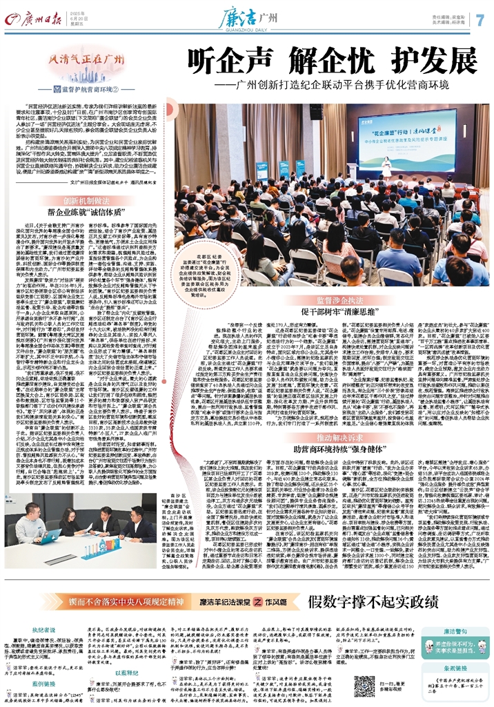 - 听企声 解企忧 护发展 “民营经济促进法新近实施,专家为我们详细讲解新法案的最新要求和注意事项,十分及时!”日前,在广州市南沙区创享湾专创国际青年社区,廉洁南沙企业联盟(下文简称“廉企联盟”)的会员企业负责人参加了一场