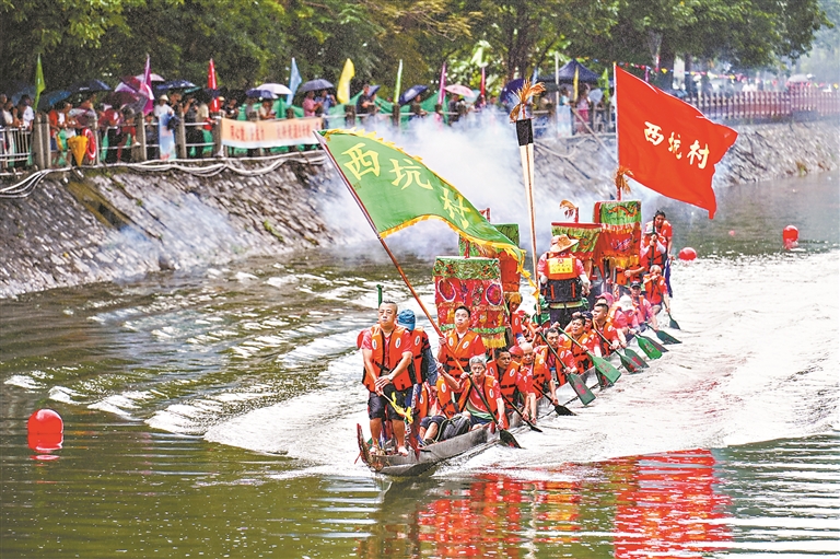 广州日报讯 (全媒体记者吴多 通讯员坑口联社、辛振翀摄影报道)这个龙船季即将进入尾声。2025年6月21日,广州荔湾区坑口经济联社在坑口涌复办盛极一时的“坑口景”——坑口经济联社龙舟友谊赛,赛事包括传统游龙、标准龙赛事,展现坑口传统龙船民俗文化的同时,生动呈现荔湾区实施“百千万工程”,推进绿美荔湾、聚美冲口、幸福坑口建设,推动坑口人居环境品质提升的新成果。