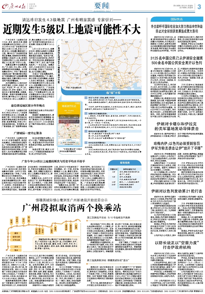 - 近期发生5级以上地震可能性不大 广州日报讯 (全媒体记者叶作林、曹菁 通讯员李曼)根据中国地震台网正式测定,6月23日18时48分在广东省清远市清城区(北纬23.62度,东经113.17度)发生4.3级地震,震源深度10公里。