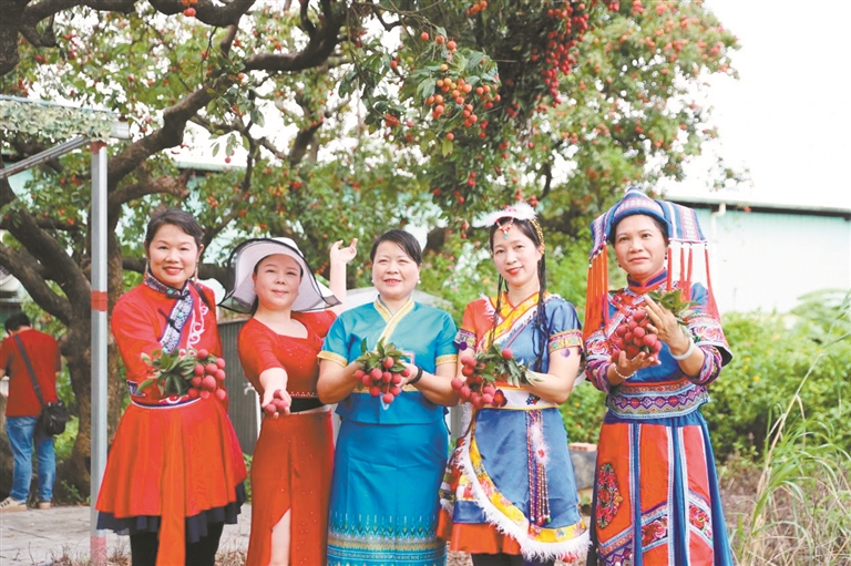 广州日报讯 (全媒体记者卢政 通讯员黄美卿摄影报道)昨日,万江街道新和社区荔枝园果香四溢,一场别开生面的荔枝采摘联谊活动在这里热烈展开。来自万江街道内地港人联谊会的成员、少数民族代表和台湾同胞代表欢聚一堂,走进果园共摘荔枝、品味岭南风情,在欢声笑语中促进团结与交流。