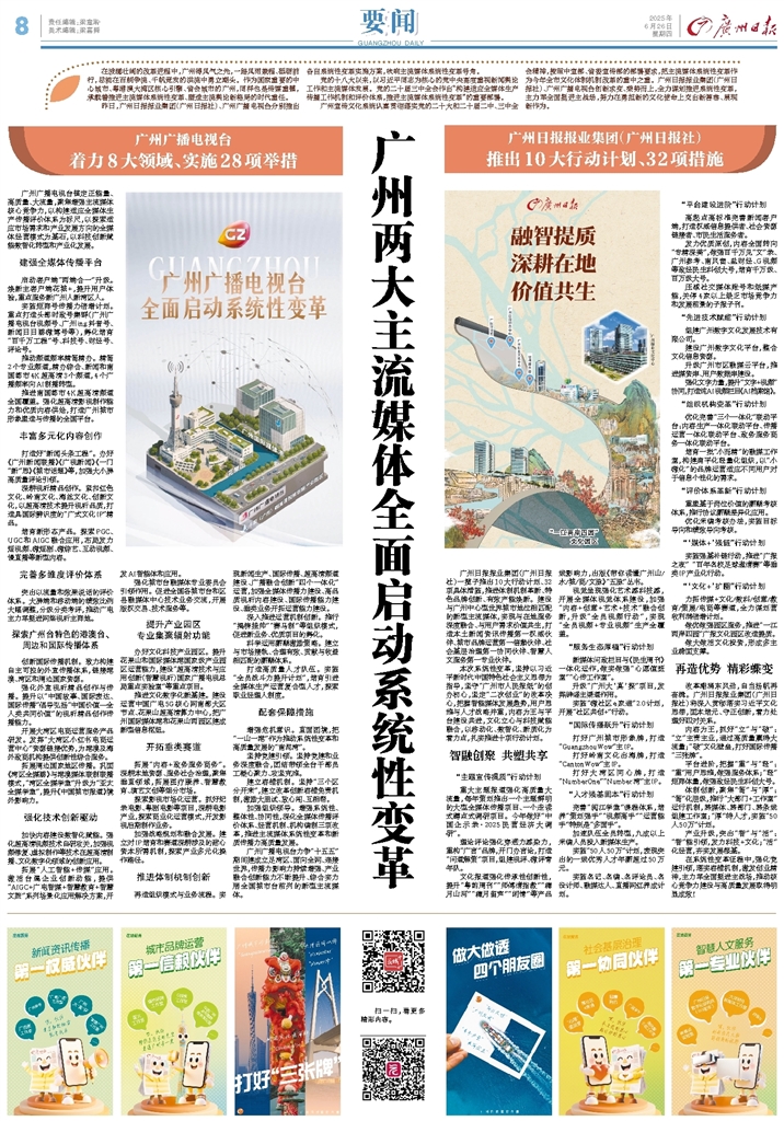 广州日报要闻 A8广州两大主流媒体全面启动系统性变革 2025-06-26 2 2025年06月26日 星期四