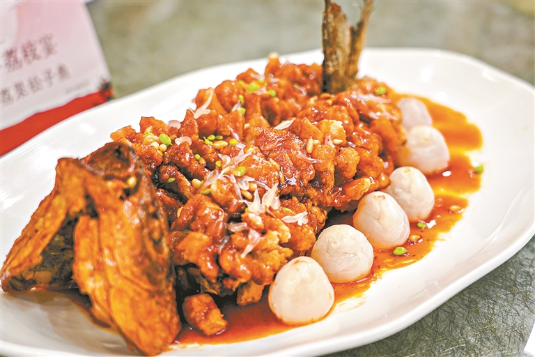 千年荔乡的甜蜜滋味,亦从枝头延伸到餐桌。本次行程,采风团还现场观摩及拍摄荔枝食品的制作过程。晶莹剔透的荔枝果肉,搭配各种时令新鲜食材,在厨师的精心烹饪下变成荔枝捞鸡、荔果松子鱼等美味佳肴,岭南佳果从田间到餐桌的产业链延伸价值得以生动呈现。