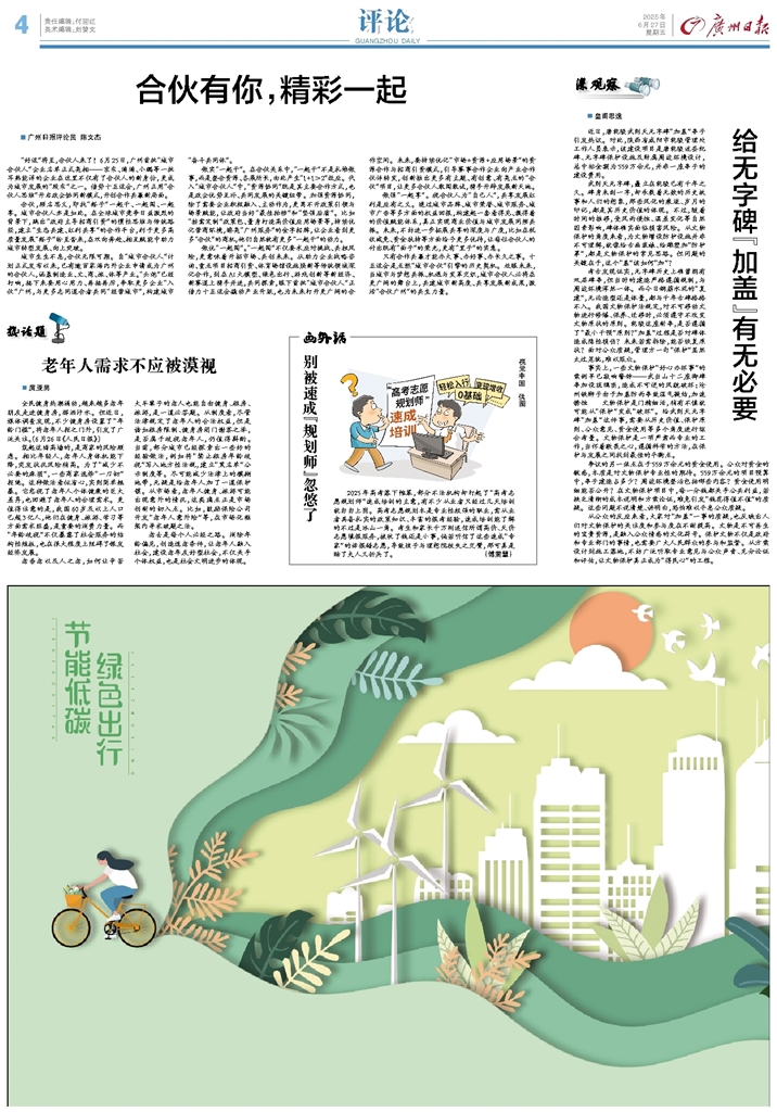 - 合伙有你,精彩一起 广州日报评论员 陈文杰 “好运”将至,合伙人来了!6月25日,广州首批“城市合伙人”企业名单正式亮相——京东、滴滴、小鹏等一批耳熟能详的企业在这里不仅有了合伙人的新身份,更成为城市发展的“股东