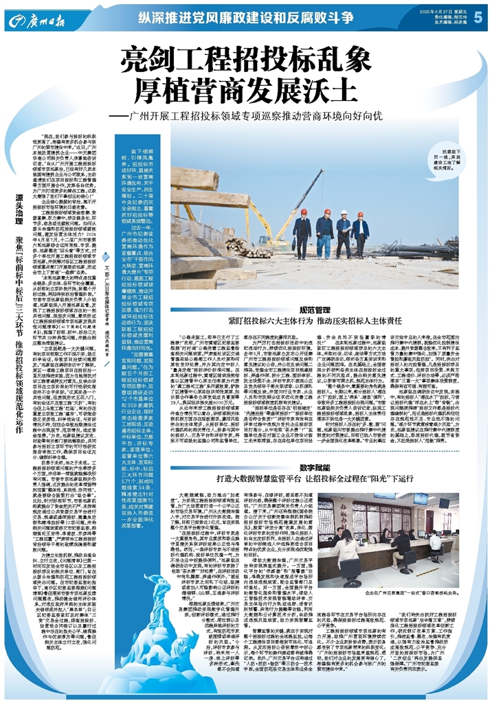 栽下梧桐树,引得凤凰来。招投标市场好坏,直接关系到一地营商环境优劣,关乎安全生产、民生福祉。二十届中央纪委四次全会指出,着重抓好招投标等领域系统整治。 过去一年,广州市纪委监委把推动优化营商环
