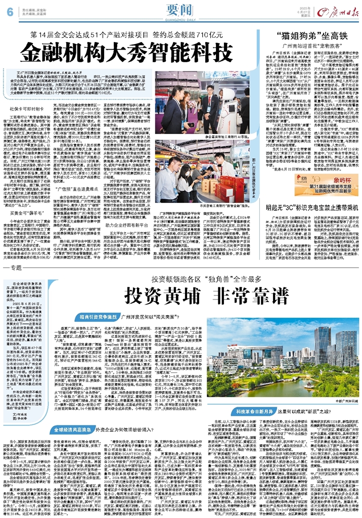 - 金融机构大秀智能科技 文/广州日报全媒体记者林晓丽、王楚涵、赵冬芹 和具身机器人握手,体验脑控下肢机器人辅助行走……昨日,一批尖端科技产品亮相第14届金交会现场,让市民近距离感受到科技创新的魅力,也生动诠释了广东金