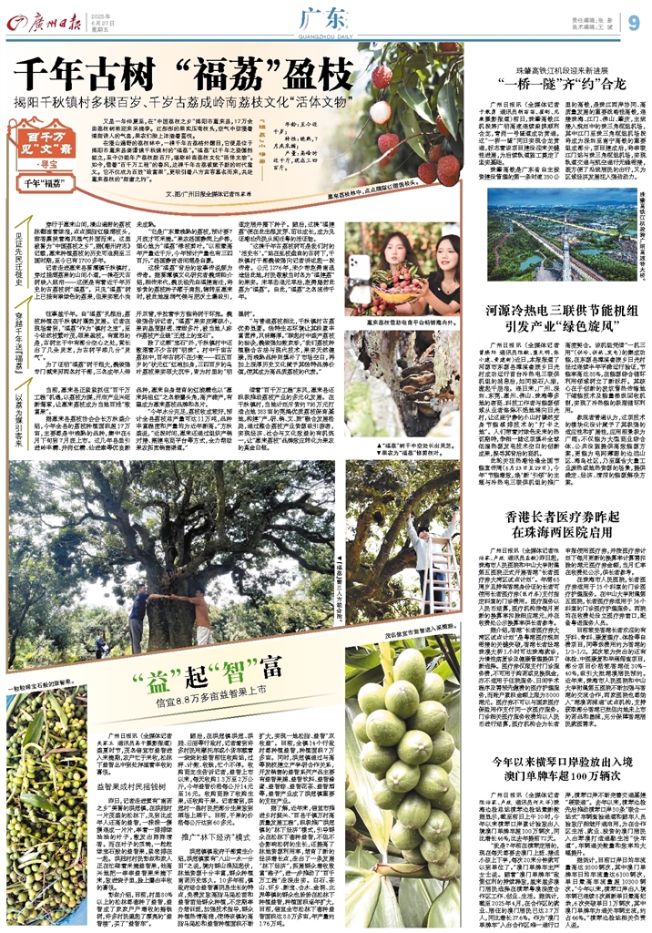 - 千年古树 “福荔”盈枝 又是一年仲夏至,在“中国荔枝之乡”揭阳市惠来县,17万余亩荔枝树将迎来采摘季。红彤彤的果实压弯枝头,空气中弥漫着清甜诱人的气息,果农们脸上洋溢着喜悦。 在漫山遍野的荔枝林中,一棵千年古荔格