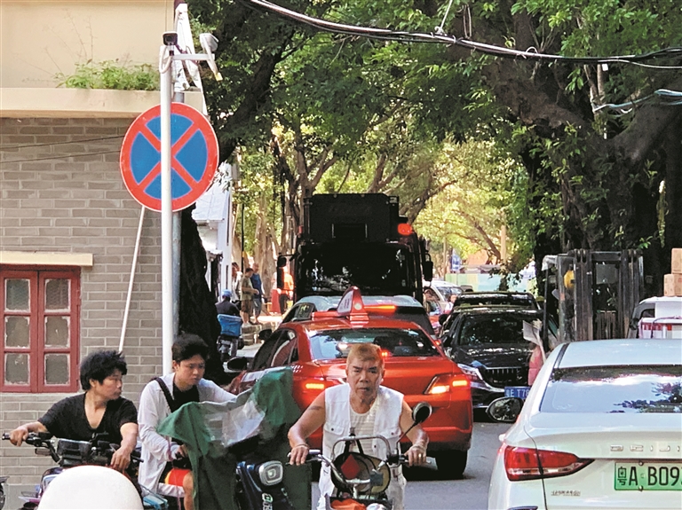 当天,记者在现场看到,从宝岗大道北往南进入润田雅苑的龙骧大街龙象里,道路为双向双车道,本身已经相当狭窄,其中一条车道停满违停车辆,一度阻碍消防车通行。