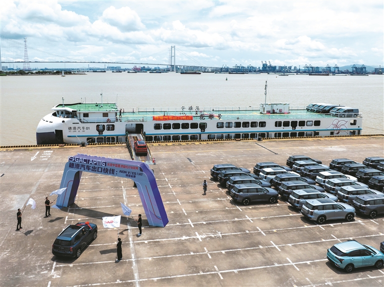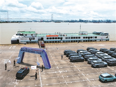 6月30日11时40分,在广州海关所属南沙海关的监管下,50余辆崭新的国产新能源汽车从海关出口监管仓驶出,从容不迫驶上“穗港汽车01”号滚装船。当天晚上,该艘滚装船抵达香港地区,其后几日,这些汽车便将陆续“花落人家”,助力香港地区居民的绿色出行。