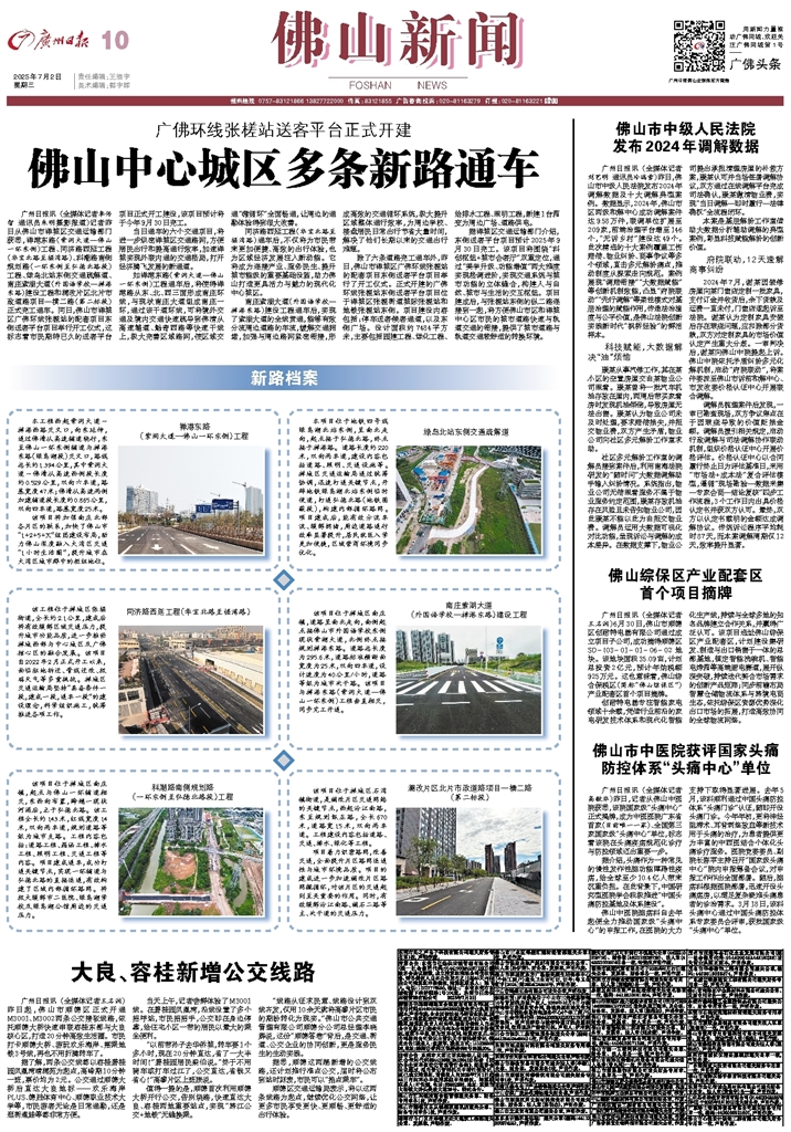 - 佛山中心城区多条新路通车 广州日报讯 (全媒体记者李传智 通讯员朱明摄影报道)记者昨日从佛山市禅城区交通运输部门获悉,禅港东路(紫洞大道—佛山一环东侧)工程、同济路西延工程(华宝北路至槎湾路)、科潮路南侧规划路(一环东侧至