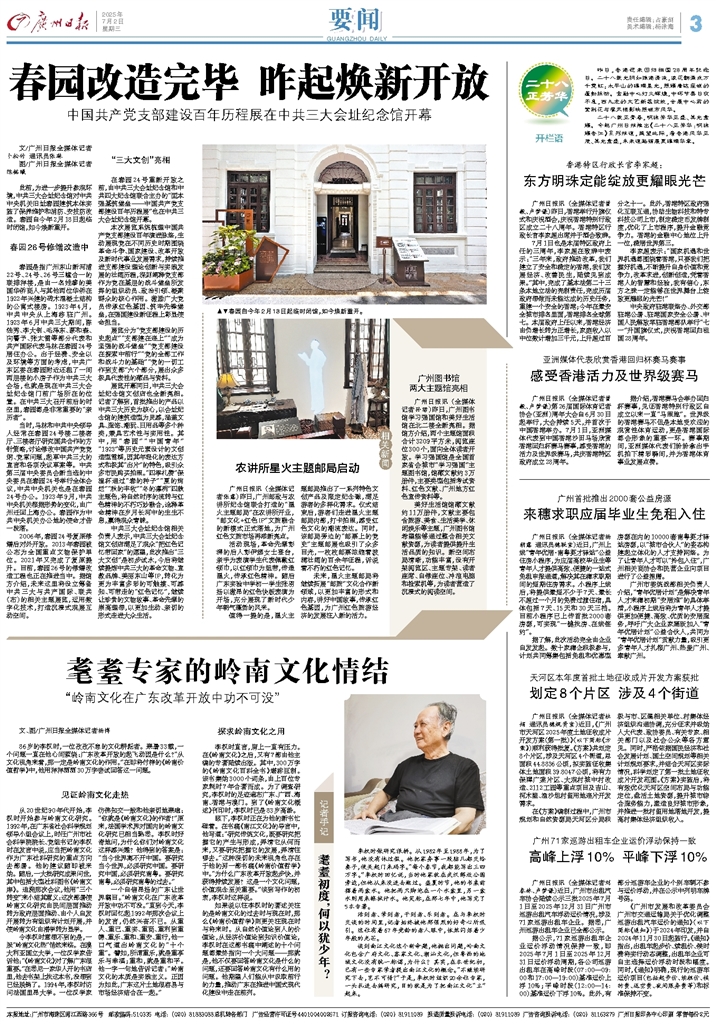 - 耄耋专家的岭南文化情结 文、图/广州日报全媒体记者杨博 86岁的李权时,一位孜孜不怠的文化耕耘者。寒暑33载,一个问题一直在他心间萦绕:广东改革开放的起飞动因是什么?“从文化视角来看,那一定是岭南文化的作用。”在即将