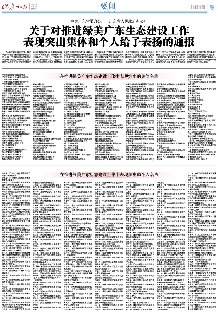 关于对推进绿美广东生态建设工作表现突出集体和个人给予表扬的通报