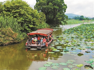 广州日报讯 (全媒体记者黄文生 通讯员麦和幸摄影报道)今夏,江门鹤山市古劳水乡荷风十里如约而至。舟行碧波间,芙蕖接天映日,游客们乘坐游船,泛舟于百亩荷塘之上。