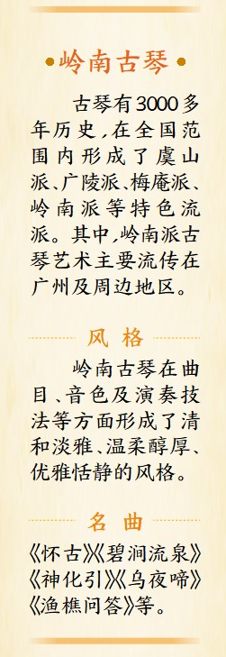 作为中国最早的弹拨乐器之一,古琴位居“琴棋书画”之首,在全国形成虞山派、广陵派、岭南派等特色流派。2008年,古琴被列入人类非物质文化遗产代表作名录。其中,岭南派古琴受儒道两家思想影响,强调古逸雅正、古拙无华、古淡幽远的意境,琴曲多感慨世事、寄情山水,追求中和至静的境界。区君虹师承岭南古琴一代宗师杨新伦,延续了“剑胆琴心”的当代岭南琴派风格。
