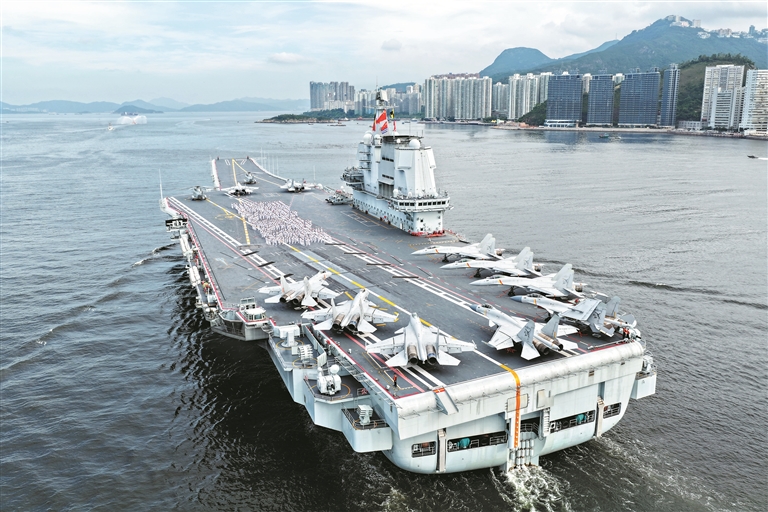 广州日报讯 (全媒体记者曾毅、卢梦谦、廖雪明)在香港回归祖国28周年之际,由中国人民解放军海军航空母舰山东舰,导弹驱逐舰延安舰、湛江舰及导弹护卫舰运城舰组成的航母编队,携多型舰载战斗机、直升机和陆战队员,于昨日上午抵达香港特别行政区,开启为期5天的访问活动。除运城舰外,山东舰、延安舰、湛江舰是首次到访香港。