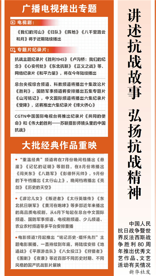 讲述抗战故事、弘扬抗战精神,一批优秀作品和节目将与观众见面。