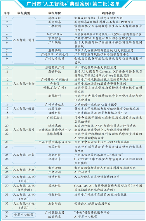 第二批广州市“人工智能+”典型案例发布 涵盖多个应用场景