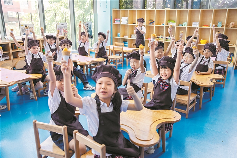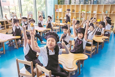 “我们开设了小小班、小班、中班和大班共4个年级,实行‘走班制’的小班教学。”许自青介绍说,“孩子们没有固定教室,有20多个实景体验馆,让孩子们体验消防员、新闻播报员、超市售卖员等不同角色,增强沟通能力和社会适应能力。此外,我们还计划在每个年级增设一个配备外教的全英文班级,培养走向世界的孩子。”