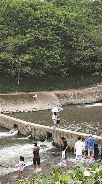 继越秀区东濠涌“华丽变身”成为市民亲水热门地后,天河车陂涌最近也“火”了。不少网友晒出在车陂涌陂头拦水坝附近(科韵公园旁)玩水的照片。这一区域更被网友称为“广州市中心溯溪玩水的宝藏去处”。
