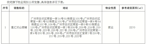 备注:上表中销售标的建筑面积仅供参考,最终以房产证登记的为准。有意向购买者,请于公告之日起至广州市天河区越秀金融大厦67楼营销品牌部登记咨询。联系电话:黄经理,18025513535。