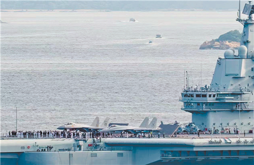 广州日报讯 (全媒体记者曾毅、卢梦谦)7月3日—7日,山东舰航母编队访港。5日,广州日报港澳站记者登上我国首艘完全自主设计、自主建造、自主配套的常规动力航母,在其有2个足球场大的飞行甲板上感受其雄伟恢宏。登舰参观的香港市民为国之重器点赞的同时,为祖国的强盛而骄傲。