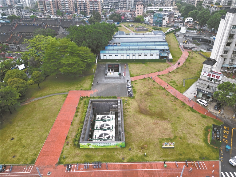 改造过程并不简单——旁边是“国保”陈家祠,地下是地铁换乘车站,改造首先要满足文物保护、地铁安全等严苛规范要求。工程方案需报到国家文物局审批,硬质广场面积要严格控制,场地标高不宜高于陈家祠院落标高,景观廊架、景墙外观等设计应简洁、朴实……