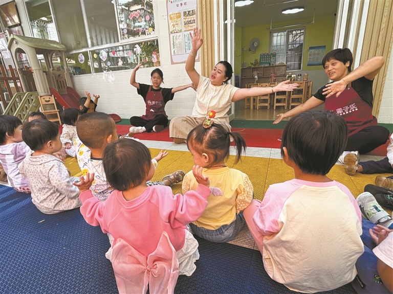 据介绍,通过街道免租金供场地、居民价水电等“应免尽免”政策,越秀区街道普惠托育园月均托费仅为市中心市场价的50%。价格亲民,服务却丝毫不打折扣,托育园除提供专业照护外,还搭配幼儿语言启蒙、感统训练等课程。区妇幼保健院还定期派驻医生指导,从日常护理到健康监测层层把关,让家长们真正实现“放心托、安心育”。