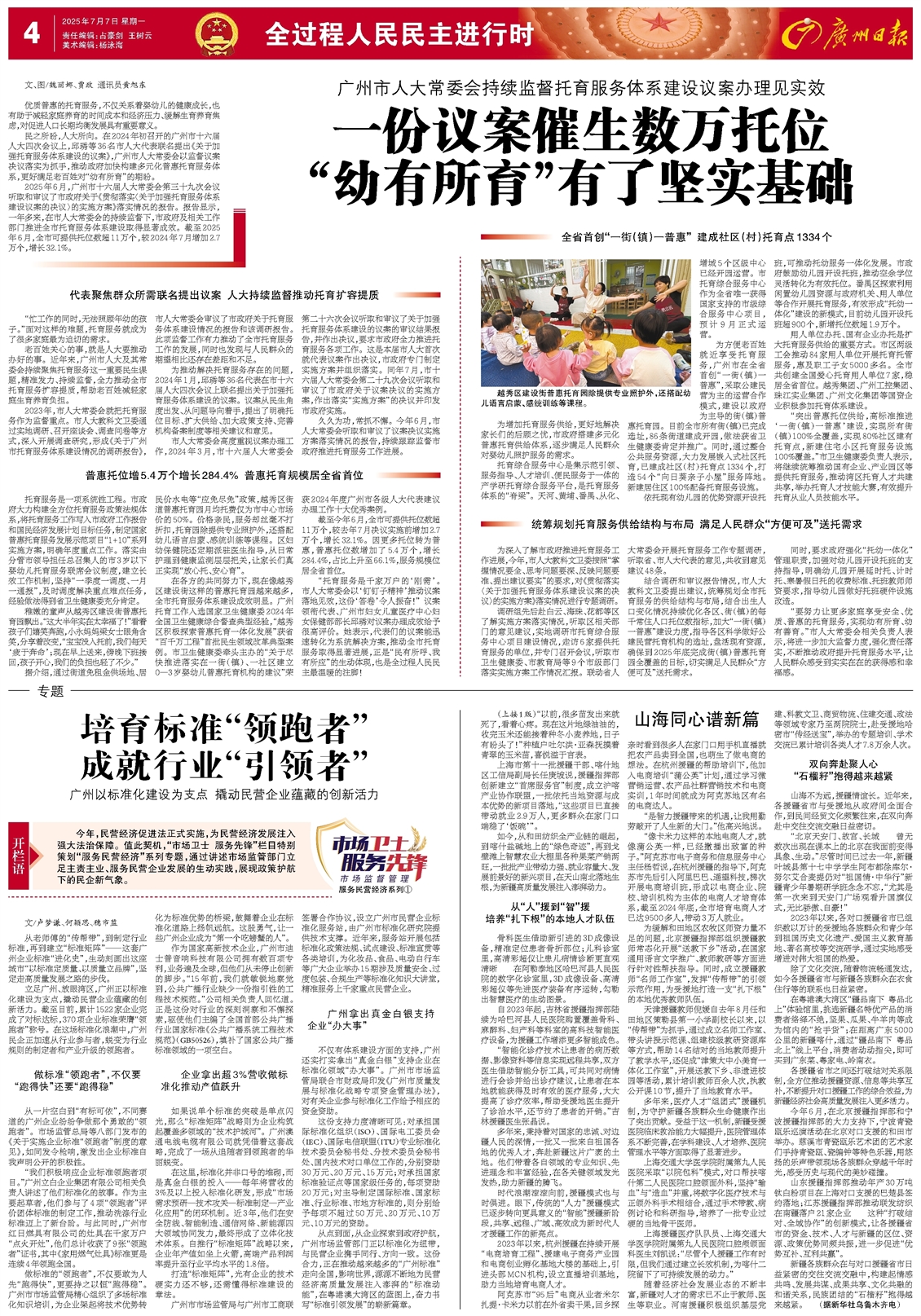民之所盼,人大所向。在2024年初召开的广州市十六届人大四次会议上,邱琇等36名市人大代表联名提出《关于加强托育服务体系建设的议案》,广州市人大常委会以监督议案决议落实为抓手,推动政府加快构建多元化普惠托育服务体系,更好满足老百姓对“幼有所育”的期盼。