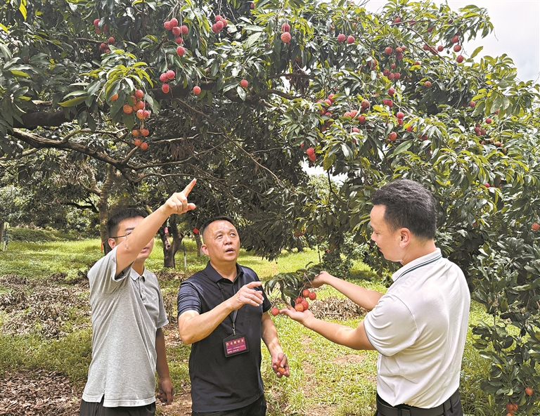 在荔枝产业发展的背后,广州市各级人大代表积极发挥作用,聚焦荔枝品种改良、营销渠道、深加工、品牌建设等,提出一系列务实建议:提高荔枝“含金量”,推行高接换种改良品种;共建“荔枝市集”,拓宽线上线下销售渠道;推动“荔枝+”深加工产业链延伸,促进农文旅融合发展;打造优质荔枝品牌,创新果树“认养”新模式……代表们的真知灼见,将一颗颗鲜红饱满的“致富果”,打造成带动乡村经济发展、促进农民增收的特色产业名片,让荔枝产业成为农民增收的“甜蜜引擎”。