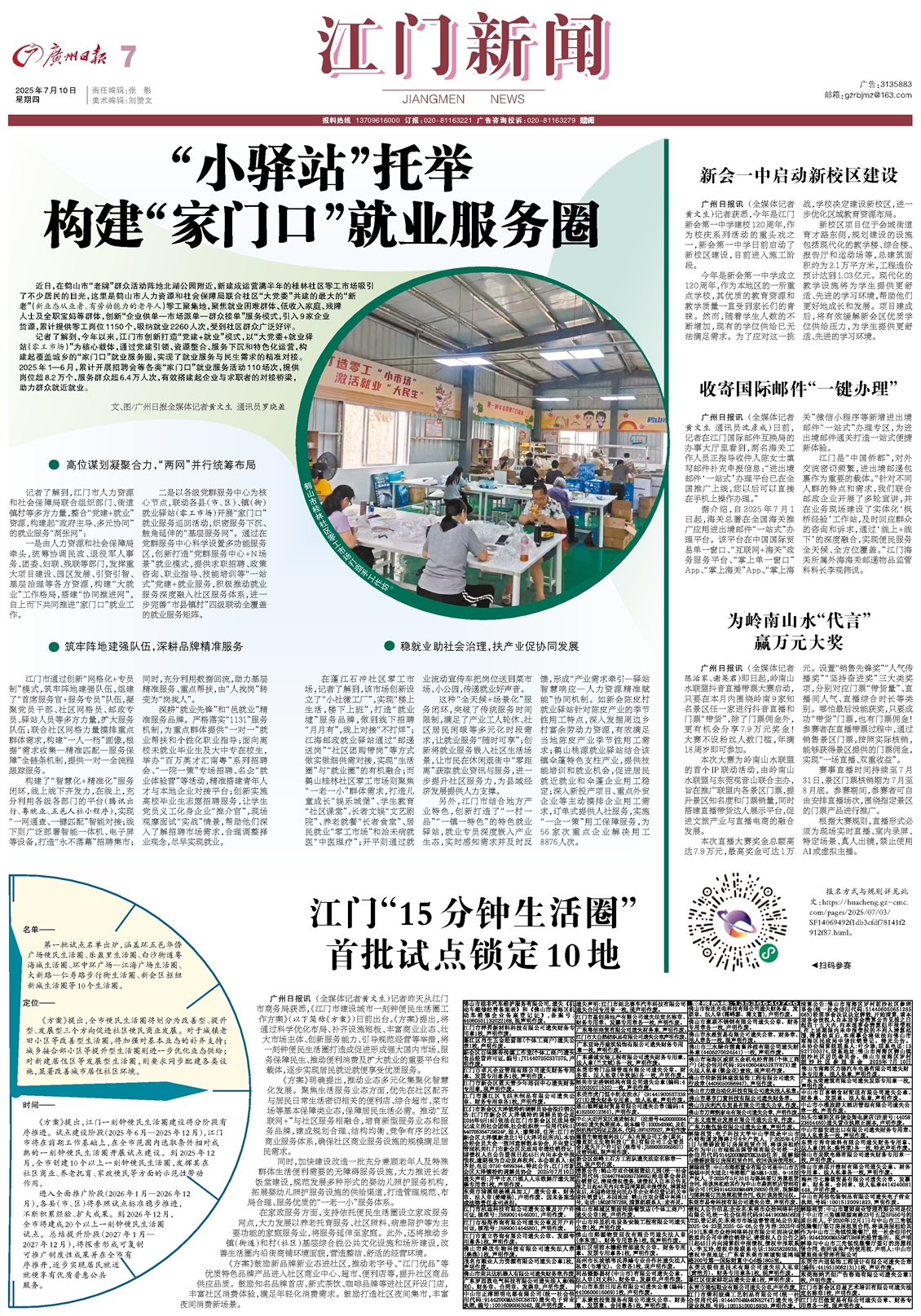 - 江门“15分钟生活圈”首批试点锁定10地 广州日报讯 (全媒体记者黄文生)记者昨天从江门市商务局获悉,《江门市建设城市一刻钟便民生活圈工作方案》(以下简称《方案》)日前出台。《方案》提出,将通过科学优化布局、补齐设施短板、丰富商业业态、壮
