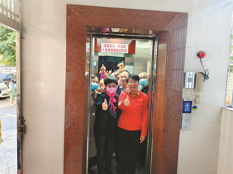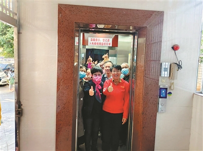 经过一年多的努力,大沙北社区共成功加装电梯32台。小区里的梁阿姨,因行动不便多年来未曾下过楼,电梯加装完成后,她终于可以坐上轮椅下楼晒太阳了。