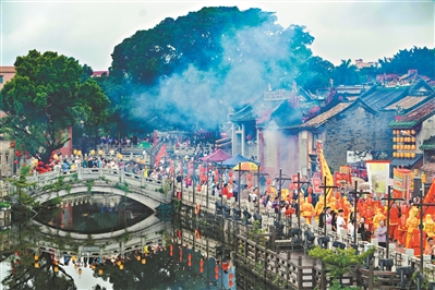 典型村培育建设是城乡区域协调发展的关键增量。南社村作为省、市“百千万工程”典型村,立足古建筑群资源,不断深化古村落保护活化利用,将古建筑活化为文化展示空间,引进百师园非遗代表性项目、茶示·茶部落等文旅项目,打造了百师园岭南非遗展览馆、非遗集市、珠绣工作室,以及茶文化体验空间等。精心打造南社斋醮、忠孝文化节以及开灯文化节等特色文化品牌,并提质升级古村夜游项目,丰富文旅业态。2022年至2024年,南社明清古村落游客量达613.7万人次,每年旅游创收上千万元。此外,南社村先后完成老人活动中心、旧鱼塘和广场升级改造、美丽田园建设项目,以及村内多条主干道的升级改造项目,村民游客幸福感、体验感不断提高;完成横岭工业园“工改工”项目,助推产业提档升级。