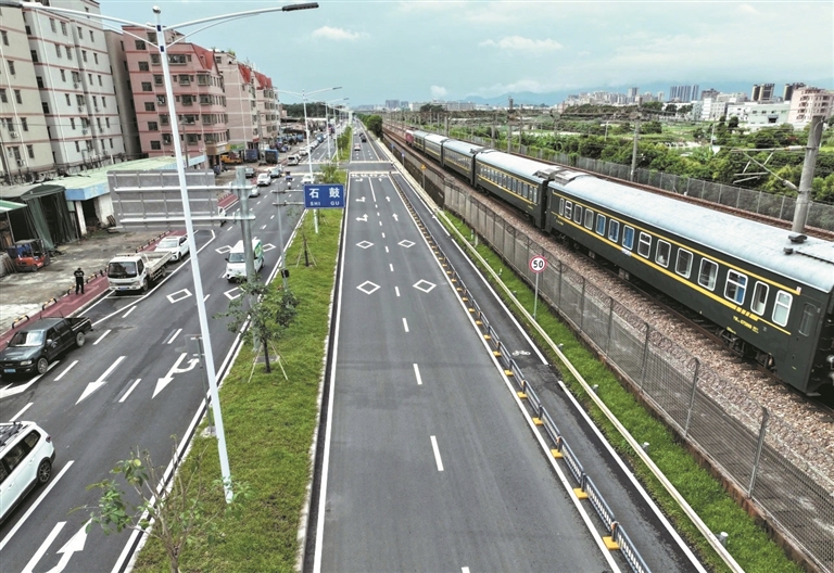 在塘厦石鼓社区,昔日的“烦心路”也变成了今天的“幸福路”。塘天南路石马段和石鼓段经过升级改造后,原本坑洼不平的水泥路面变成了平坦的沥青大道,不仅解决了群众出行难的问题,也让人居环境得到全面提升。