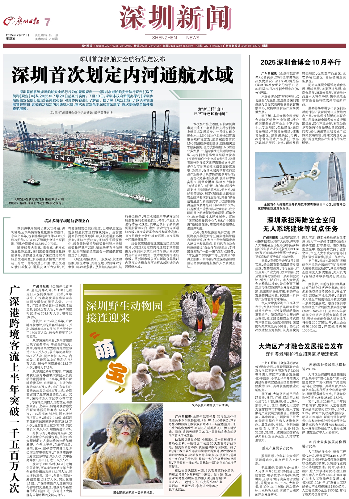 - 深圳首次划定内河通航水域 深圳首部系统规范船舶安全航行行为的管理规定——《深圳水域船舶安全航行规定》(以下简称《规定》)将从2025年7月20日起正式实施。7月10日,深圳市政府新闻办举行《深圳水域船舶安全航行规定》新闻发