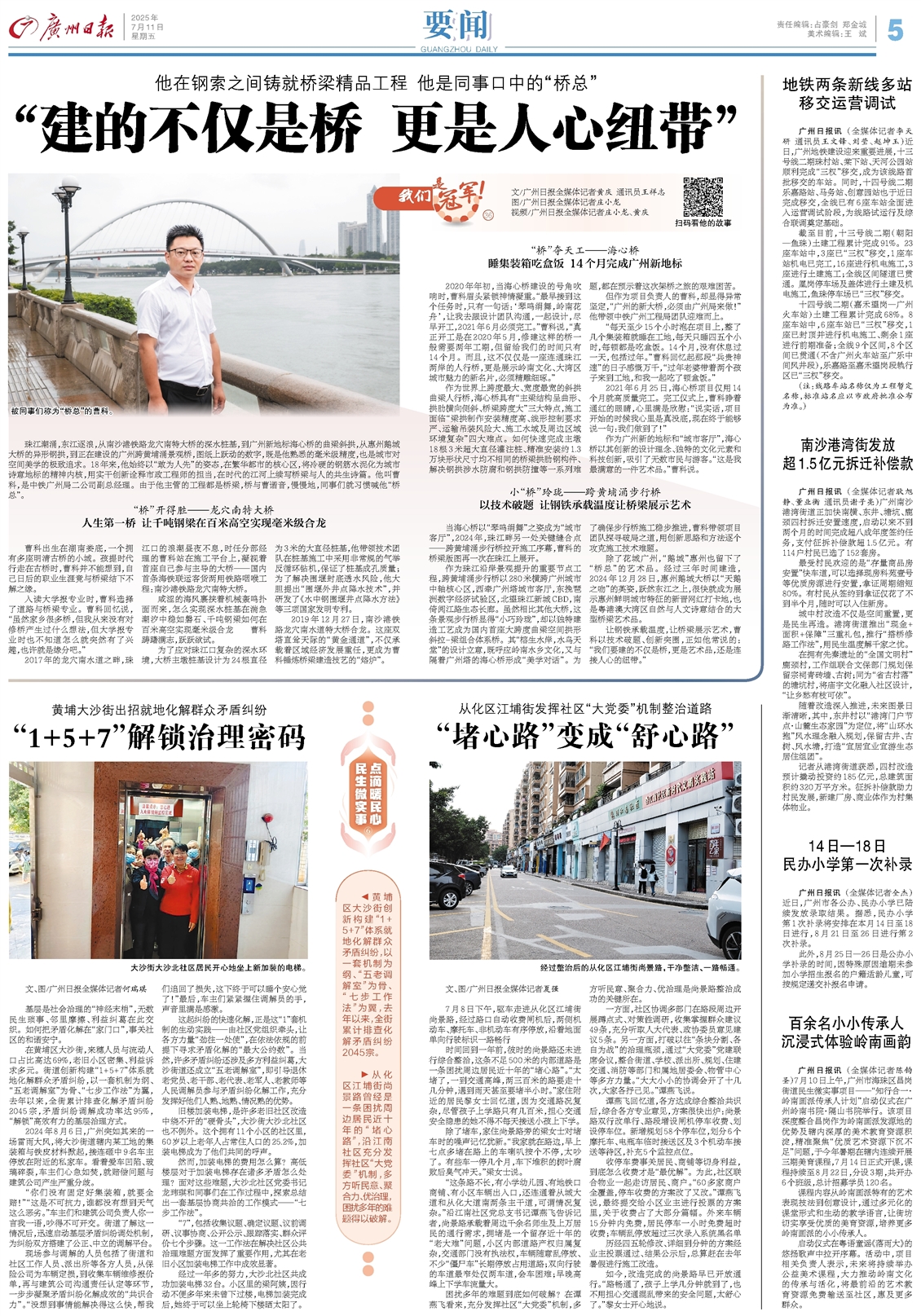 - “1+5+7”解锁治理密码 民生微实事 点滴暖民心 ⑥ 文、图/广州日报全媒体记者何瑞琪 基层是社会治理的“神经末梢”,无数民生琐事、邻里摩擦、利益纠葛在此交织。如何把矛盾化解在“家门口”,事关社区的和谐安宁。