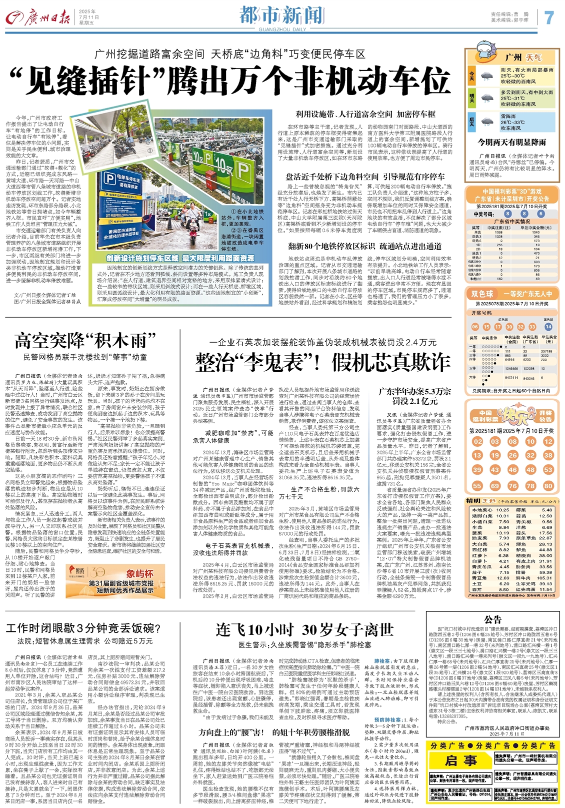 - “见缝插针”腾出万个非机动车位 今年,广州市政府工作报告提出了让电动自行车“有地停”的工作目标。让电动自行车“有地停”,看似是解决停车位的小问题,实则是关乎民生便利、城市治理效能的大文章。 昨日,记者获悉,广州市交通运输