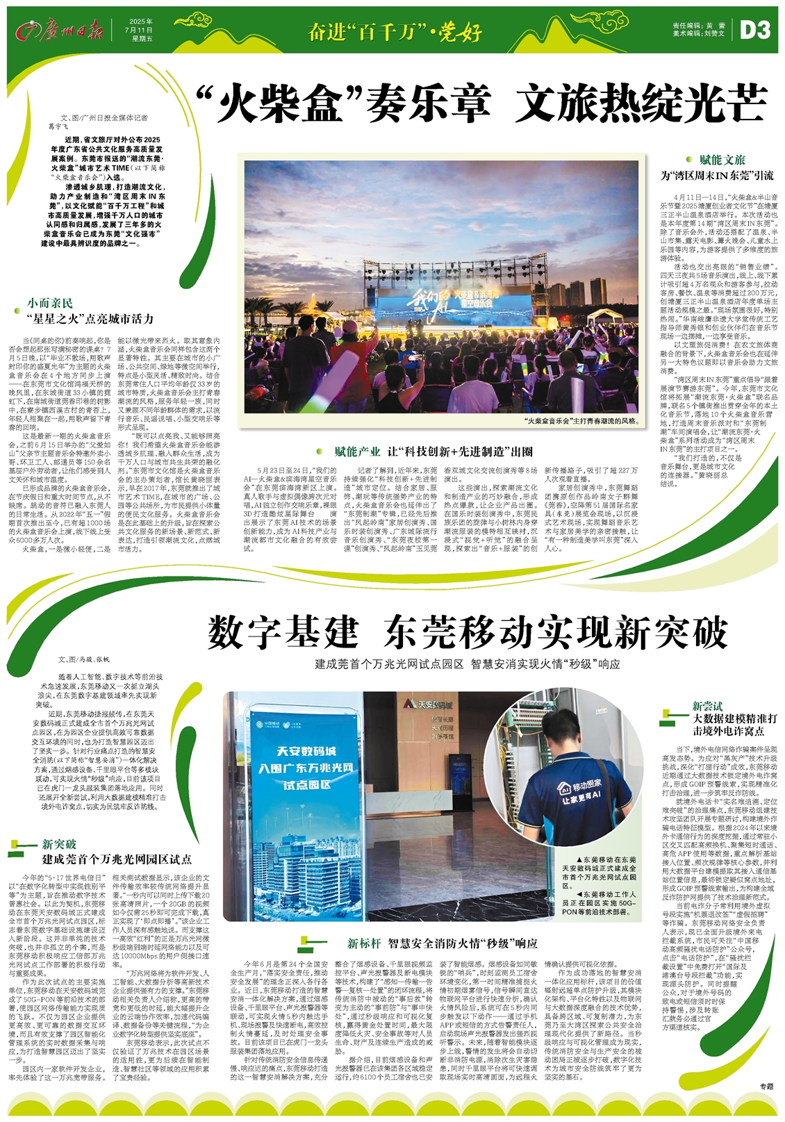 - 数字基建 东莞移动实现新突破 文、图/马骏、张帆 随着人工智能、数字技术等前沿技术急速发展,东莞移动又一次挺立潮头浪尖,在东莞数字基建领域率先实现新突破。 近期,东莞移动捷报频传,在东莞天安数码城正式建成全市首个万兆光