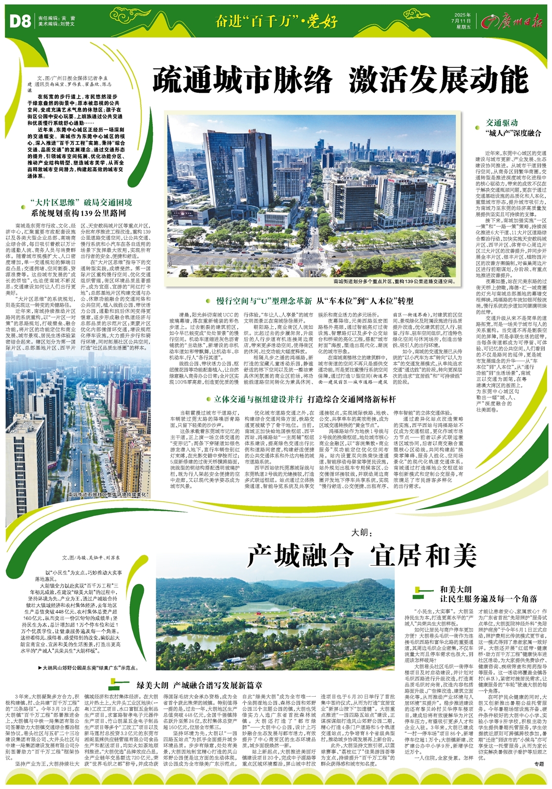 - 疏通城市脉络 激活发展动能 文、图/广州日报全媒体记者李直建 通讯员南城宣、罗伟良、翟嘉欣、陈志谦 在拓宽的步行道上,市民悠然漫步于绿意盎然的街景中;原本被忽视的公共空间,变成充满艺术气息的休憩区;孩子在街区公园中安心玩