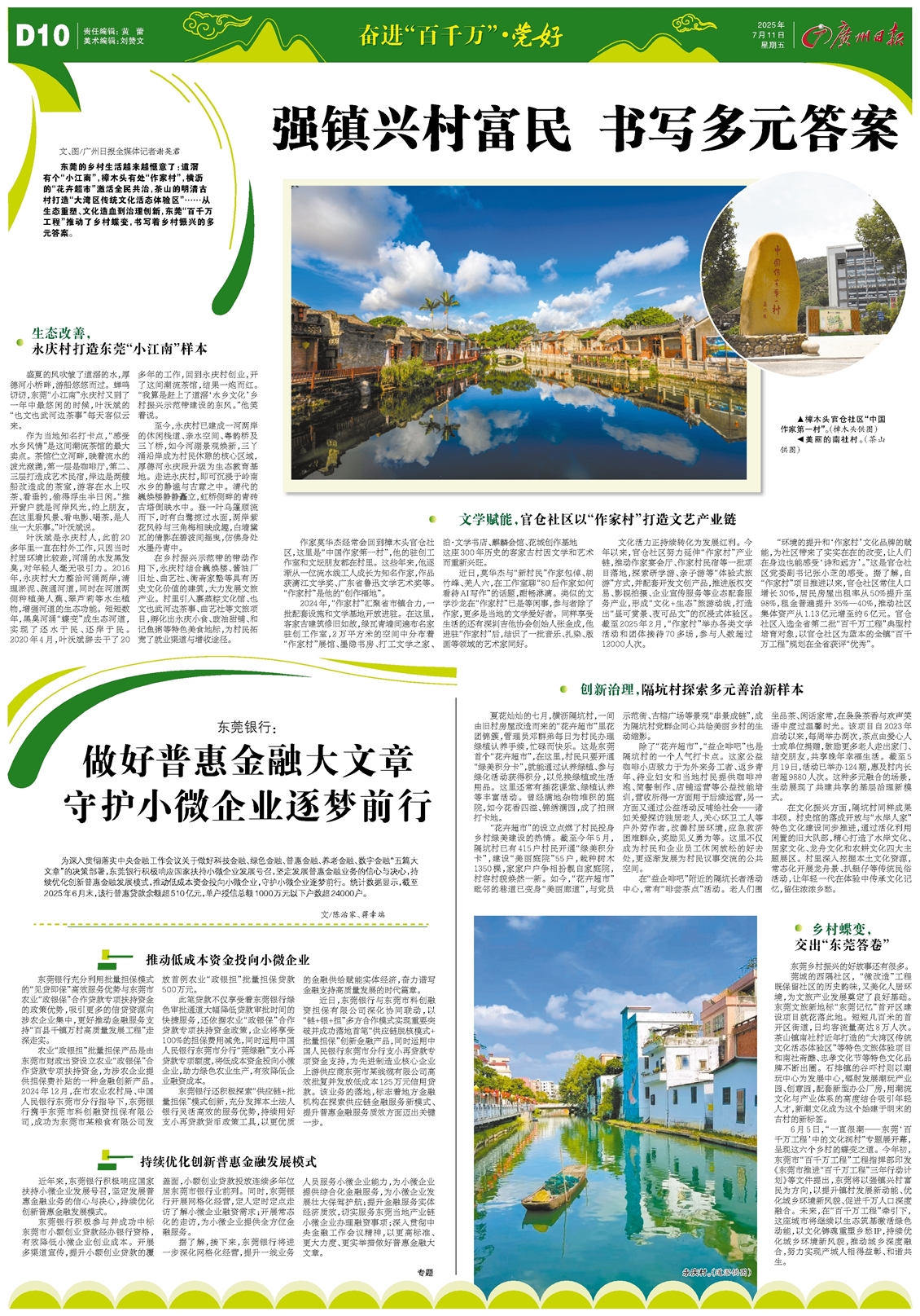 - 强镇兴村富民 书写多元答案 文、图/广州日报全媒体记者谢英君 东莞的乡村生活越来越惬意了:道滘有个“小江南”,樟木头有处“作家村”,横沥的“花卉超市”激活全民共治,茶山的明清古村打造“大湾区传统文化活态体验区”……从生态