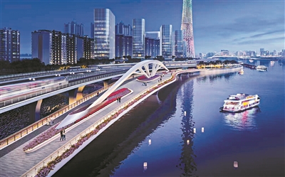 黄埔涌步行桥建成后,将连接黄埔涌东西两岸,顺应珠江人流走向,解决交通断点问题,成为连接沿江绿道与城市核心区的关键纽带,大幅提升广州大桥南至猎德大桥南滨水区域的通行效率,成为继海心桥后珠江上的又一文化新地标。