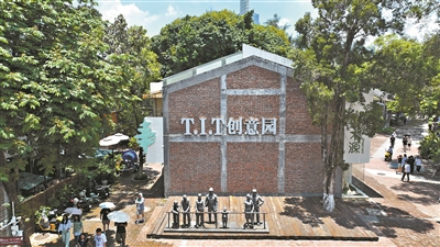 这是记者在位于广州市海珠区新港中路397号的T.I.T创意园中看到的一幕。这处由广州纺织机械厂旧址改造而来的创意园区不仅实现了产业的升级,也留下了宝贵的风景。工业风与智慧产业相融,在城市新中轴线上造就了美丽的景观,让我们看到了工业遗产活化的精彩。