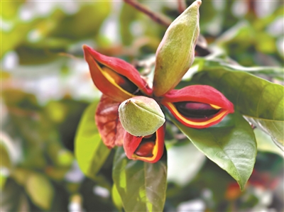 广州日报讯 (全媒体记者肖桂来 通讯员袁辉、陈国添摄影报道)盛夏时节,番禺区石壁街韦涌村的凤眼果进入成熟期,枝头上青色的果荚逐渐转变成暗红色,部分果荚裂开,露出浑圆的果实,成为村内一道独特的风景。