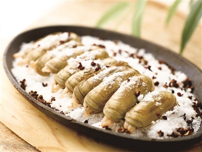 蛏子因以足部掘穴居住,故其足部肉质最为紧实可口。要选最肥美的蛏子,最佳时节当数6~8月,壳薄肉厚,甘甜肥厚,乃是海味中的极品。入秋后蛏子便进入繁殖期,味道大打折扣。作为海鲜界的营养师,蛏子不仅风味独特,还富含谷氨酸、甘氨酸蛋白质和钙,其铁含量甚至比猪肝还高。