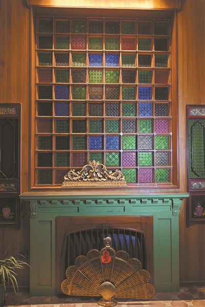 记者看到,一楼和二楼以彩色玻璃装饰的壁炉至今保存完好,可以使用。奉微介绍,据叶氏后人介绍,一楼大厅在当年常举办舞会等交际活动,而二楼则是宴会厅。如今在二楼巨大的长条餐桌上方,新开了一个由彩色玻璃拱顶装饰的天窗。光线透过玻璃散射进来,让屋内变得明亮透亮。
