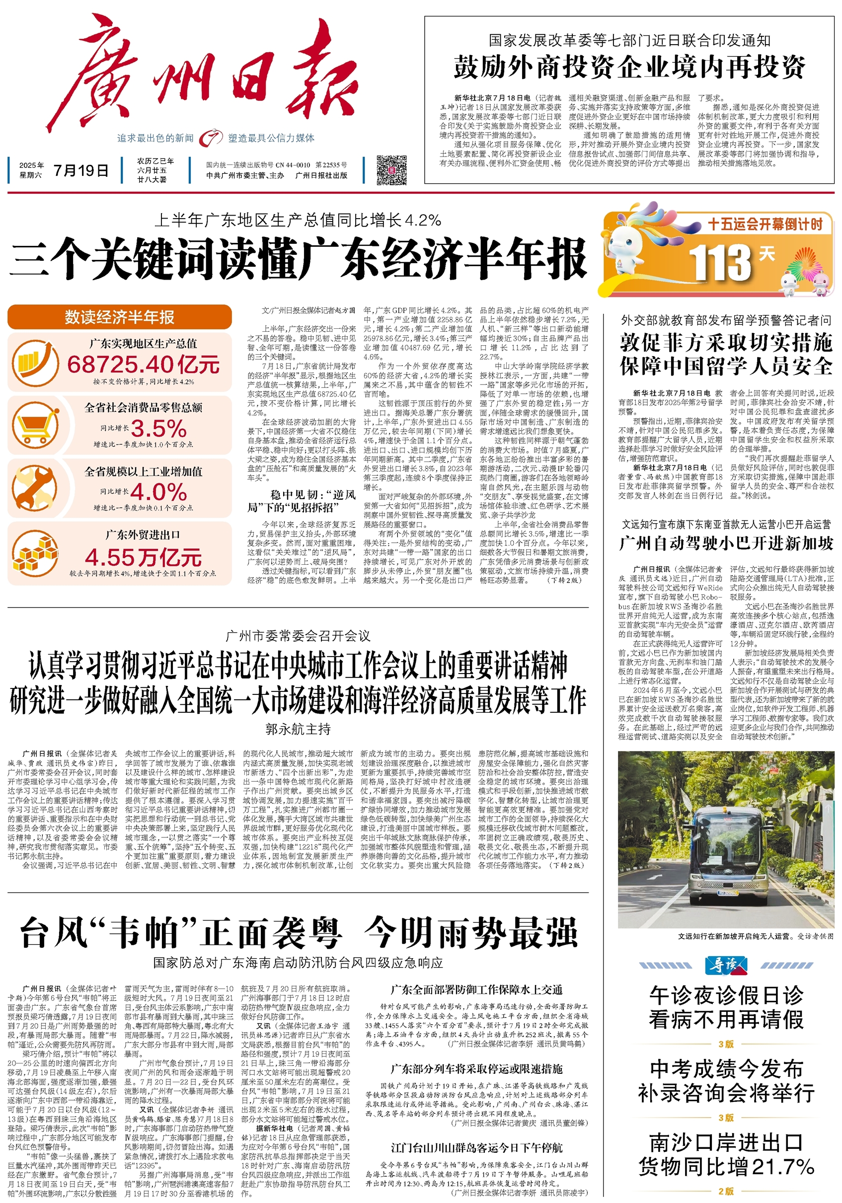 - 三个关键词读懂广东经济半年报 文/广州日报全媒体记者赵方圆 上半年,广东经济交出一份来之不易的答卷。稳中见韧、进中见智、全年可期,是读懂这一份答卷的三个关键词。 7月18日,广东省统计局发布的经济“半年报”显示,