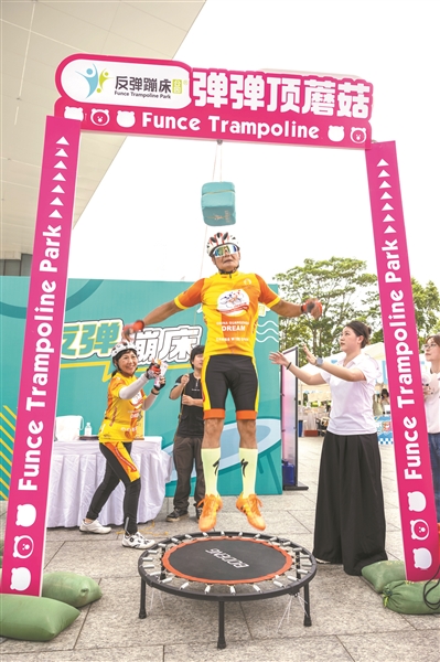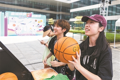 市集还设置了跨界互动游戏,古风爱好者能沉浸式体验历史上的体育运动;动漫爱好者则能探寻“二次元+体育+文创”的融合创意。足球井字棋、迷你冰壶、乒乓进桶、篮球机等趣味运动项目吸引了市民边玩边赢取奖品。