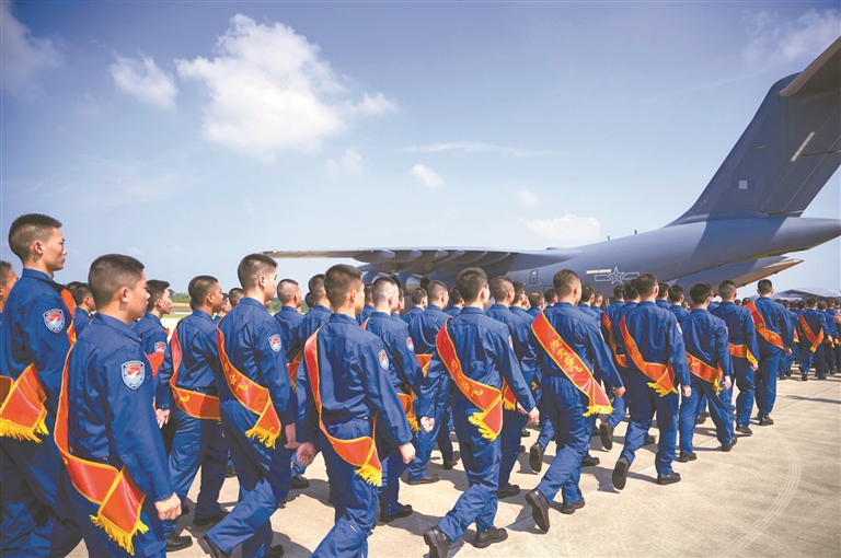 空军使用运-20飞机,运送新飞行学员去报到。   广州日报全媒体记者邱伟荣 通讯员张树林、张令、吴龙、黄丹尉 摄