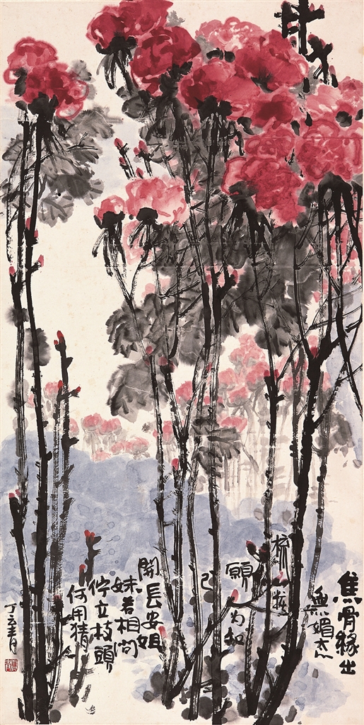 《焦骨牡丹》  纸本设色 135cm×68cm 1998年 丁云青