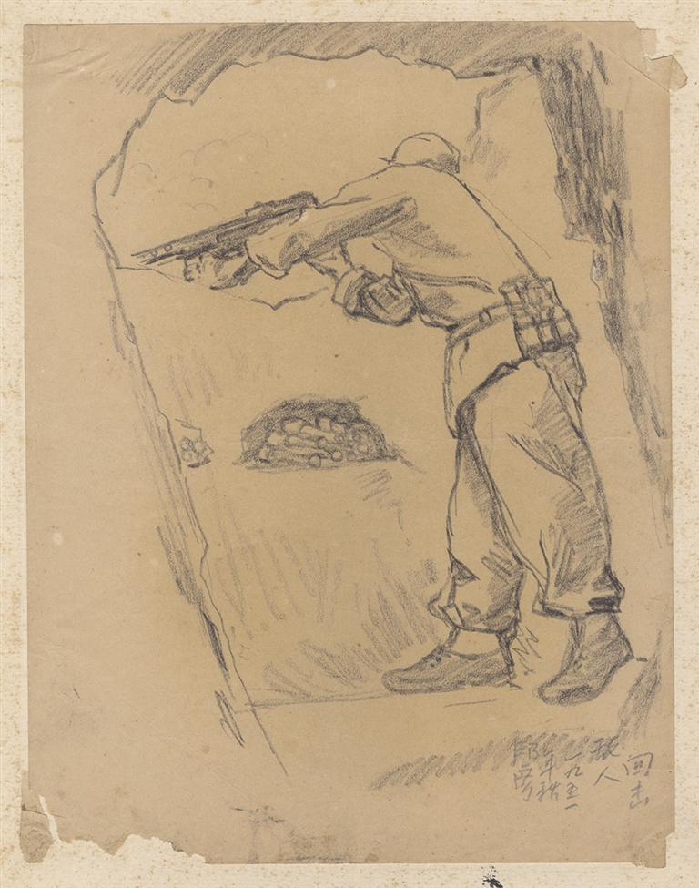 抗美援朝战地速写《回击敌人》 纸本炭笔 1951年 王邦彦