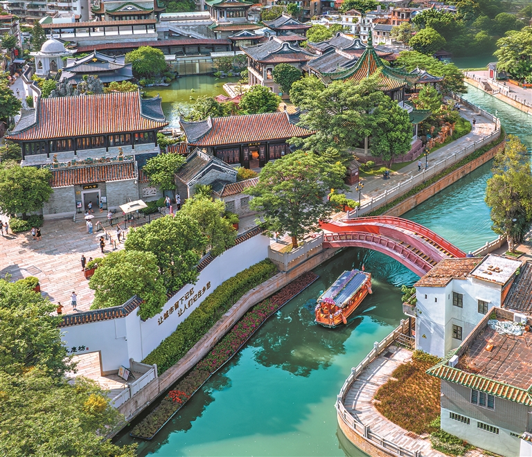 一湾溪水绿,两岸荔枝红。广州荔湾区自古风物荟萃、名胜云集,很早就成为对外贸易和中外文化交流活跃之地,被誉为“广州作为海上丝绸之路的起始地、岭南文化的中心地、近代中国革命的策源地和中国改革开放的前沿地”的缩影和窗口。在北片的西关片区,文商旅活力区正书写“老城市新活力”的故事;而在南片的芳村片区,广州市重点打造的世界级地标商圈白鹅潭商圈,正加速刷新珠江西岸城市界面。