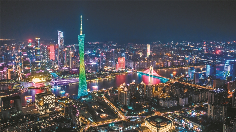 在广州新中轴线上,“塔映花城”以广州塔为笔,蘸珠江碧波,写尽海心沙流光溢彩,铺展花城广场四季芳华。笔触南延,洇染海珠湿地天光云影。花城广场、珠江夜景、海珠湿地三大景观,一并融入广州艺术博物院和广州文化馆的文化精髓,共同演绎出一座千年商都的艺术气质与生态智慧。新时代,新中轴线是珠江两岸延绵的脉络,是面向世界的窗口,更是羊城腾飞的脊梁。